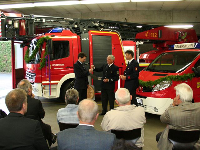 Am 15.08.2010 fand im Gerätehaus Bornheim die offizielle Übergabe und Einsegnung der neuen Drehleiter (DLA(K) 23/12) für die Löschgruppe Bornheim sowie des Mannschaftstransportfahrzeugs (MTF) für die Löschgruppe Hersel statt.