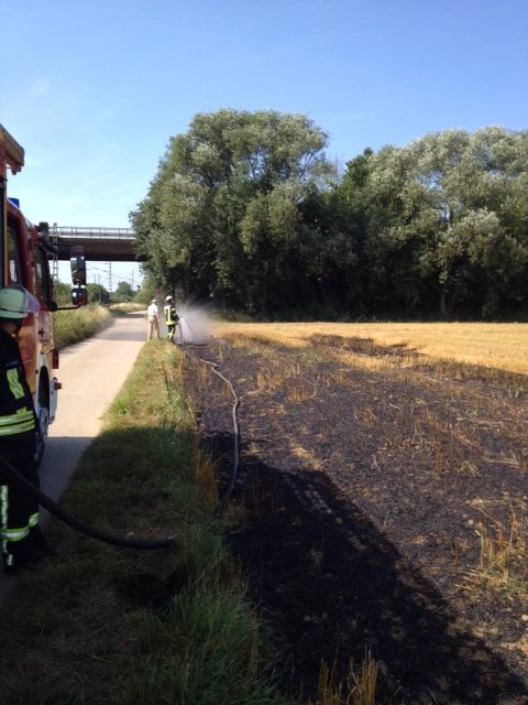 Am Mittwoch den 15.08. um 15:07 Uhr wurde die Löschgruppe Bornheim in die Alfred-Rademacher-Straße gerufen. Dort brannte ein bereits abgeerntetes Feld an der Bahnlinie Köln/Bonn, zwischen der L192 und der Alfred-Rademacher-Straße.