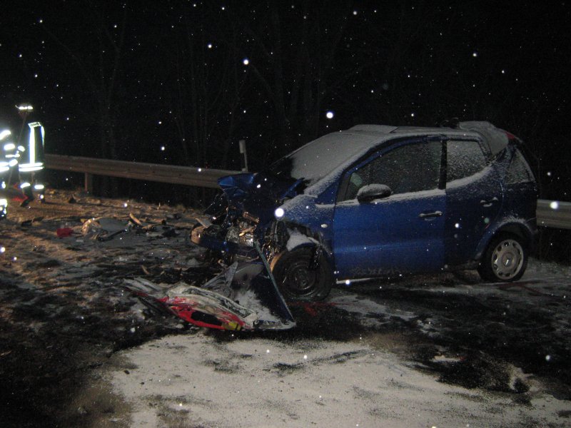Auf der glatten Fahrbahn konnten zwei weitere Fahrer den Unfallwagen und den Trümmerteilen nicht mehr rechtzeitig ausweichen, so dass schließlich vier Fahrzeuge in den Unfall verwickelt waren. Dabei wurde eine weitere 44jährige Fahrerin verletzt. Und ein weiterer Mann mussten aus den Fahrzeugen befreit werden.