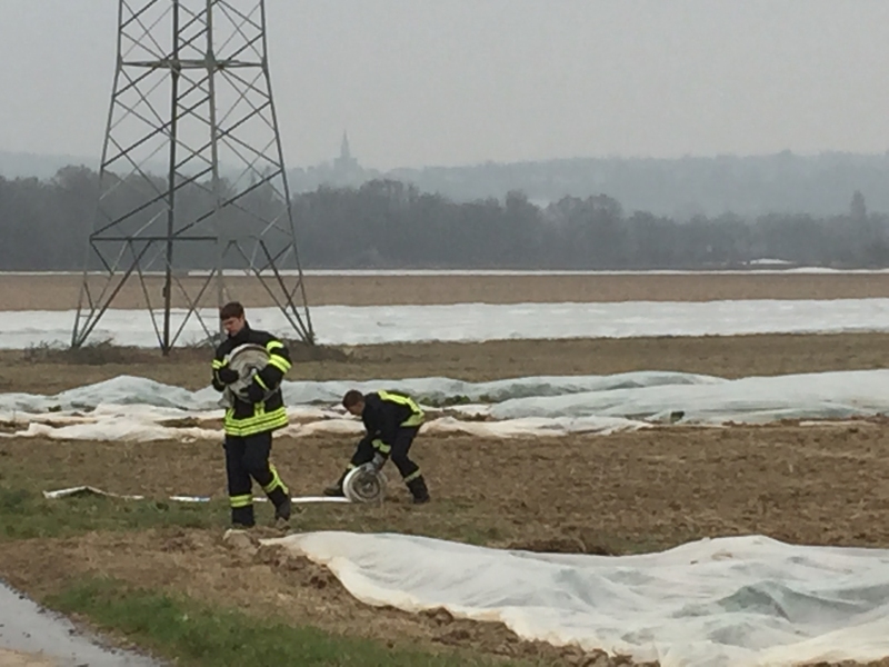 Weil abzusehen war, das dass auf den Fahrzeugen befindliche Wasser nicht ausreichte, wurde eine Wasserversorgung über einen Feldhydranten durch die Löschgruppe Sechtem aufgebaut. Dieser wird von den Bauern in der Regel zur Bewässerung der Felder gebraucht. Da das Feuer auch unter einer Hochspannungsleitung war, kümmerten sich die Kameraden aus Bornheim und Brenig im ersten Moment um das niedrighalten des Feuers an dieser Stelle.