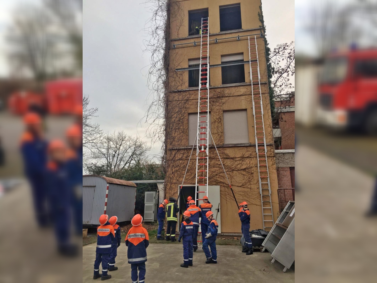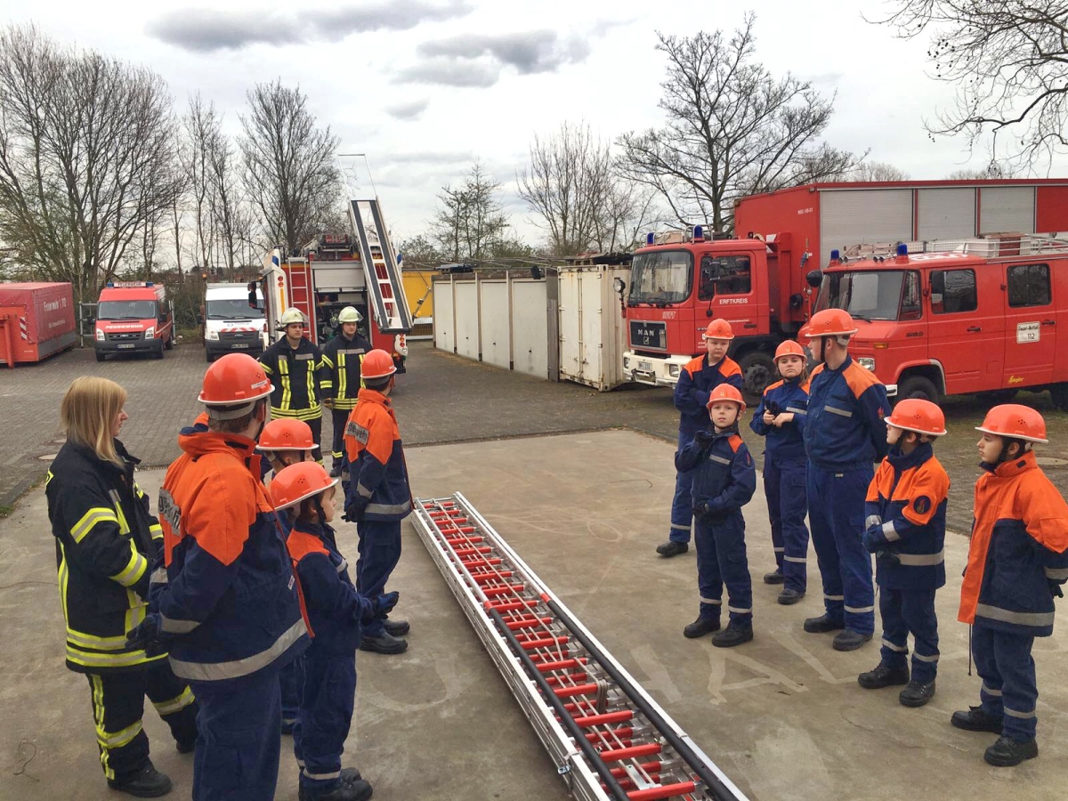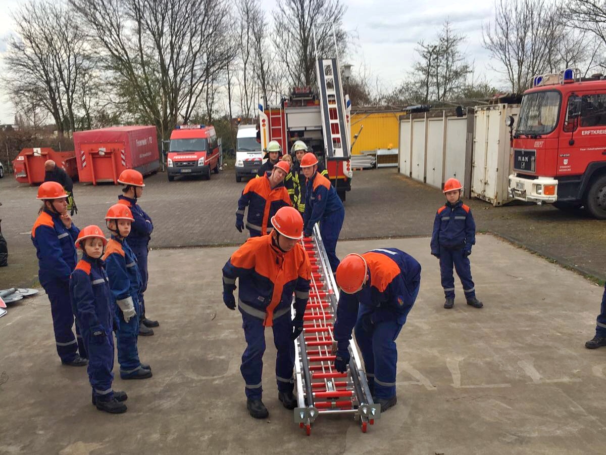 Die Jugendfeuerwehren der Löschgruppen Bornheim und Waldorf waren bereits am Mittwoch den 30. März 2016 zu einer gemeinsammen Übung auf dem Gelände der Feuerwehr Wesseling aufgebrochen. Dort wurde am Schlauchturm mit den tragbaren Leitern geübt. Geübt wurde die richtige entnahme der Leitern vom Fahrzeug, sowie der richtige Aufbau. Gesichert, konnte der mutige Feuerwehrnachwuchs, das Steigen in die dritte Etage üben.