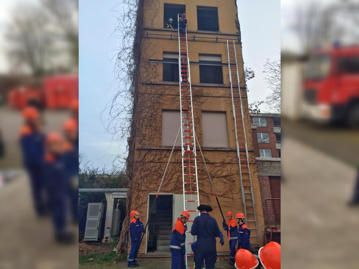 Übung Leitern am Schlauchturm der Feuerwehr Wesseling